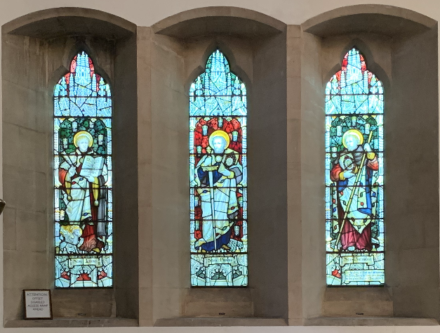 The original St George’s Lady Chapel extended beyond a wooden screen that was erected some years ago to accommodate a new clergy vestry. The new window is set in the void, above the screen, and has reinstated the Lady Chapel’s importance in a dramatic fashion.