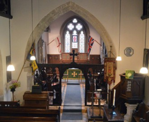 The chancel arch which appears to be from around 1300 is broad, pointed and of bold character and suggests that the chancel was either a late addition to the nave or that it was enlarged at the time the arch was built. It is believed that the sanctuary was built onto the east end of the chancel around 1500 with a new east window. The existing screen to the chancel is made up from fragments of Jacobean work and the supports and other parts are clearly Victorian. The Jacobean carving may have come from the old west gallery.