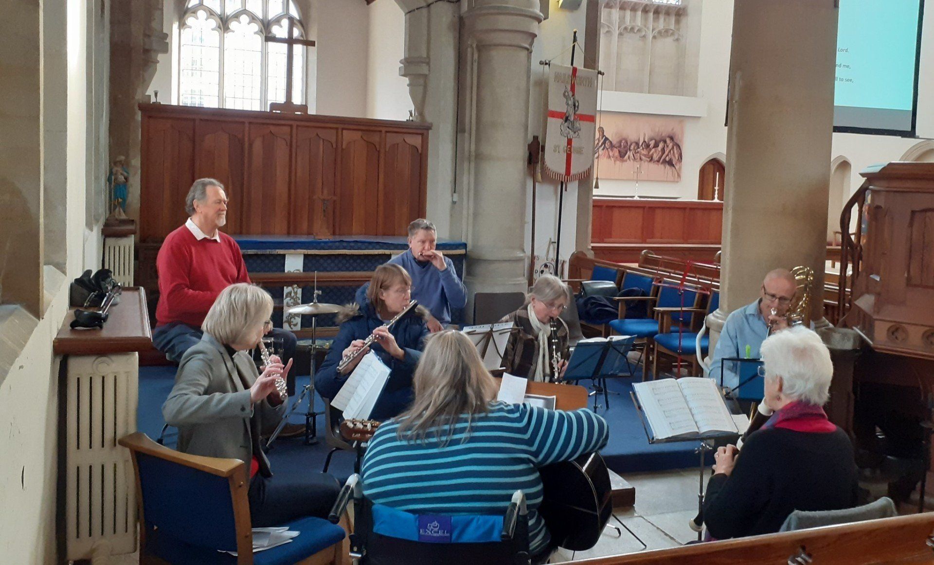 The music group was set up in October 2019 with the aim of playing prior to the family services. It has expanded over a short period of time to a group of musicians, playing a wide range of instruments, from trombone to Harmonica! The group plays as people come into church on the first Sunday of the month and also play for the hymns of that service. The feedback from everyone has been very positive.